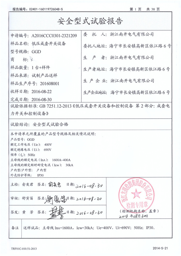 GGD 1600A~400A 试验报告