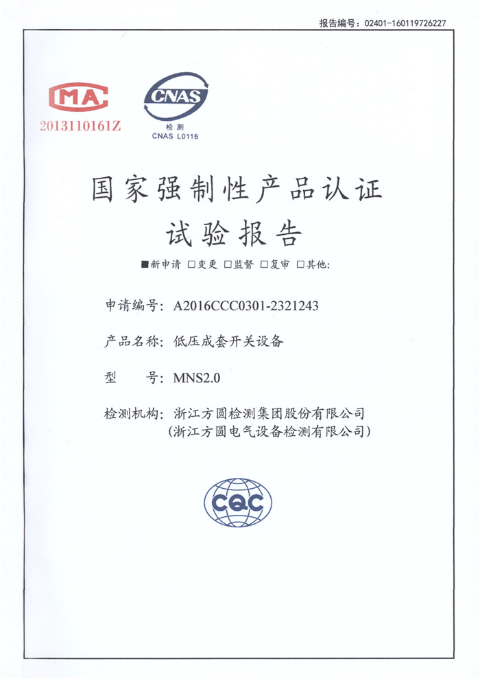 MNS2.0 1600A~400A 试验报告