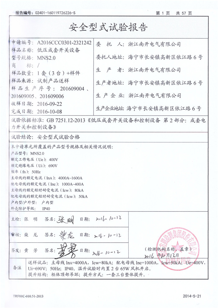 MNS2.0 4000A~1600A 试验报告