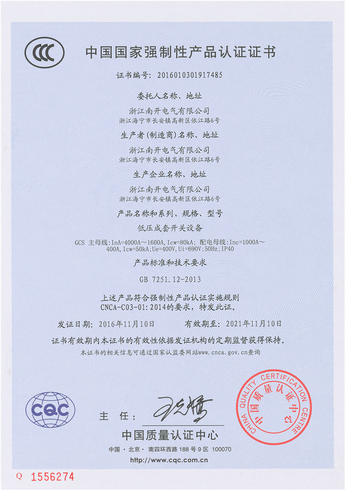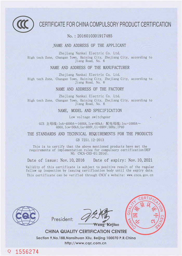 GCS 4000A~1600A 3C证书
