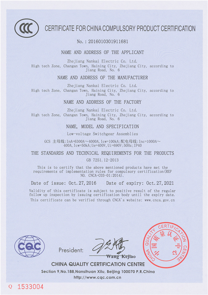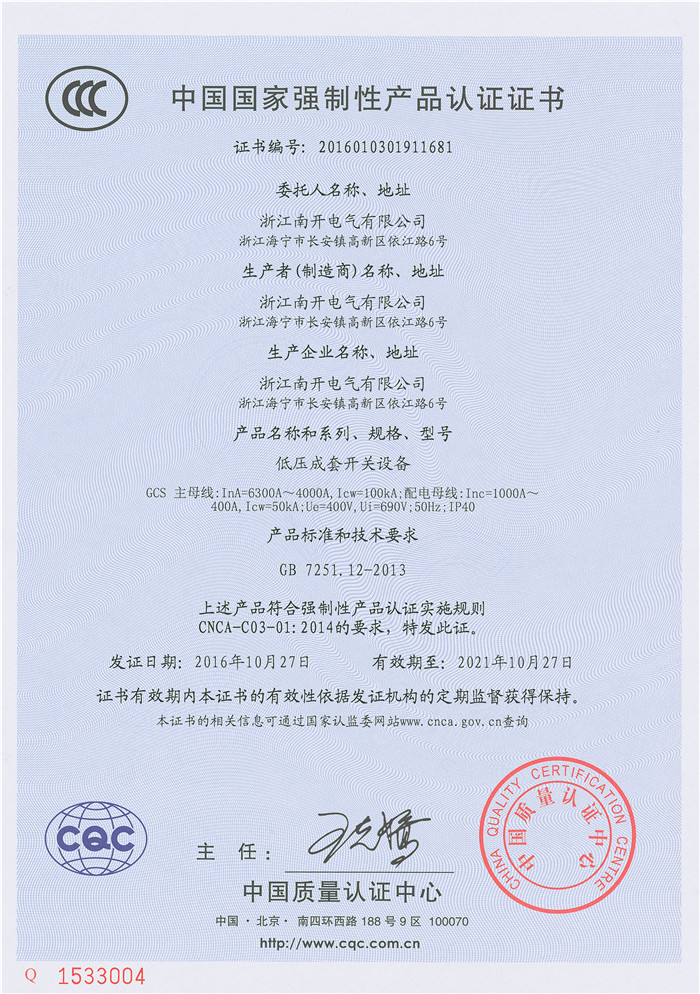GCS 6300A~4000A 3C证书